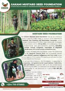 The Mustard Seed Foundation has set an ambitious goal to plant 15 million trees ,in support of the Presidential National Tree Growing and Restoration Campaign, which targets the planting of 15 billion trees nationwide, to increase Kenya’s forest cover to 30% by 2032, while addressing critical environmental and socio-economic priorities, including climate change mitigation, restoration of degraded landscapes, and enhancement of food security.