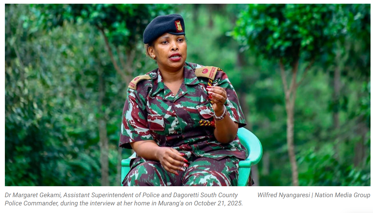 • As the first woman in the Administration Police with a PhD, she blends discipline, education, and passion for a greener, more inclusive Kenya.